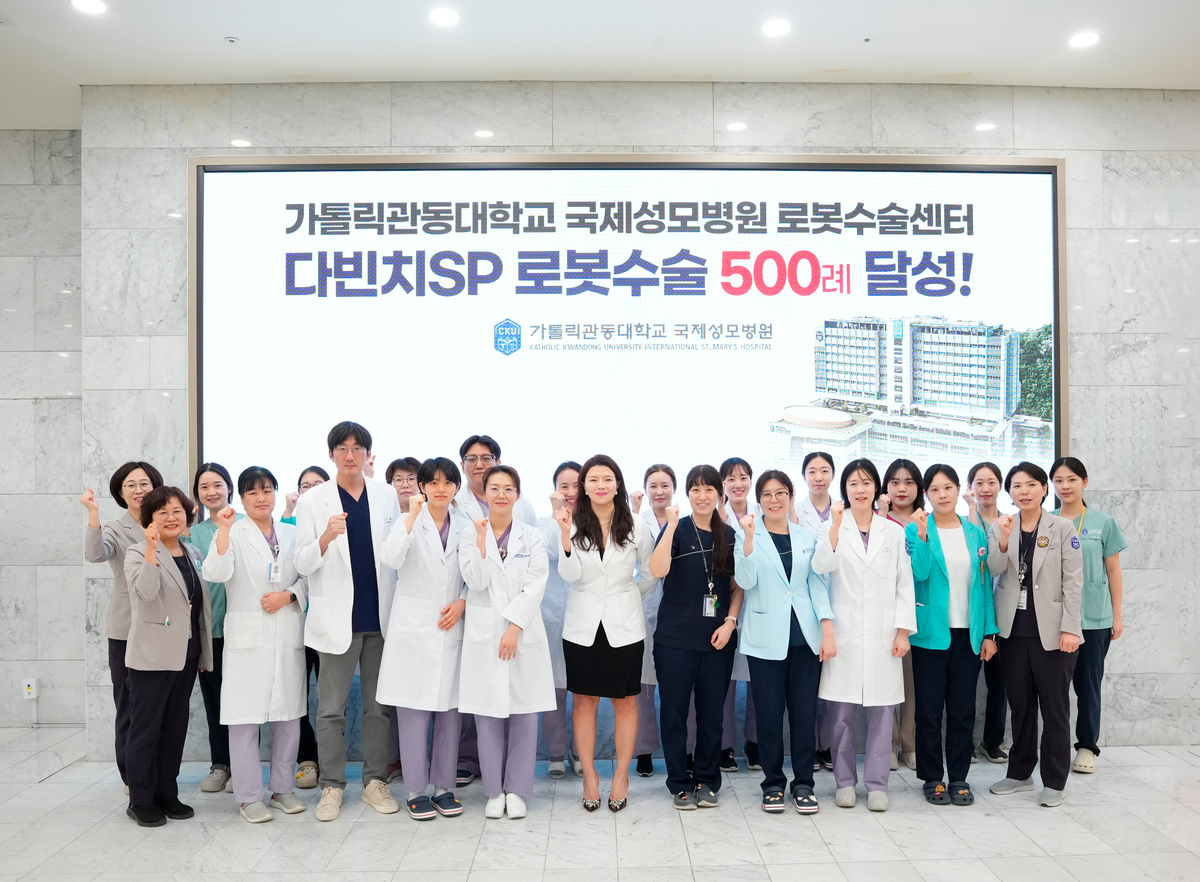 가톨릭관동대 국제성모병원이 단일공 로봇수술 500례를 달성하며 의료 기술의 새로운 이정표를 세웠습니다. 병원 측은 31일, 이 성과를 기념하는 자리를 마련하고, 로봇수술센터의 의료진과 임직원들이 함께 축하의 시간을 가졌습니다.