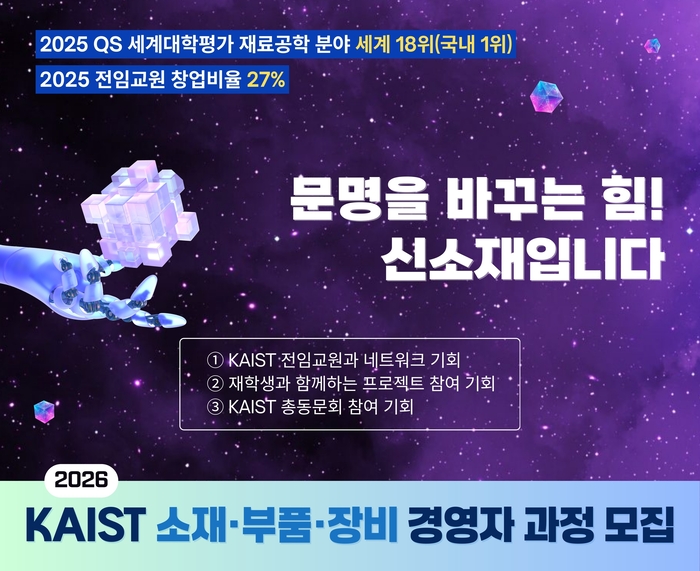 한국과학기술원(KAIST)이 국내 최초로 소재·부품·장비(소부장) 분야에 특화된 경영자 과정을 개설하며, 2026년 봄학기 교육생을 모집합니다. 이 프로그램은 오는 3월 9일부터 7월 20일까지 18주 동안 진행되며, 해당 분야의 전문 인력 양성을 목표로 하고 있습니다.