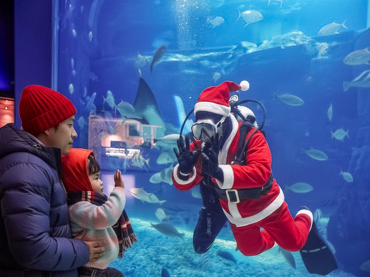 아쿠아플라넷이 크리스마스를 맞아 특별한 이벤트를 개최하며 관람객들에게 즐거운 시간을 선사하고 있습니다. 이곳에서는 인어와 다이버가 함께 등장하는 산타 공연을 통해 방문객들을 맞이하며, 다양한 볼거리를 제공하고 있습니다.
